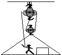 33.一保洁工人,要清洗一高楼的外墙,他使用了如图8-119所示的装置进行升降,已知工人的质量为60kg,保洁器材的质量为20kg,人对绳的拉力为300N,吊篮在拉力的作用下1min匀速上升了10m,求: