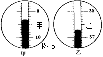 图5中,温度计(甲)的读数是_____℃,(乙)的读数是_____℃。