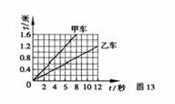 18、甲、乙两小车同时同地同方向做匀速直线运动,它们的s-t图像如图13所示。经过6秒,两车的位置关系是