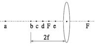 1.在探究凸透镜成像实验中,点燃的蜡烛分别放在a、b、c、d、e五个位置如图14所示: