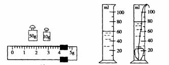 15、在“用天平和量筒测定固体和液体的密度”实验中,为测定物体的质量,调节天平横梁平衡时,发现天平的指针静止在分度盘中央刻度线的左侧,则应将横梁上的平衡螺母向_______调节。将一矿石标本放在已调好的天平左盘内,当天平重新平衡时,右盘内的砝码和游码在标尺上的位置如图4甲所示,则矿石的质量为_________ g。将矿石标本放入装有水的量筒中,量筒中水面位置的变化情况如图4乙所示,则矿石的体积为________cm3,这种矿石的密度为___________kg/m3。
