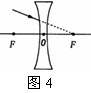 16、请画出图4中入射光线经过凹透镜后的折射光线