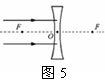 17、 如图5所示,平行于主光轴的两条光线射向凹透镜,请画出它们通过透镜后的折射光线.