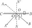 思路解析:B点的甲同学通过平面镜看到乙同学,是由于乙同学反射发出的光线,经镜面反射后,反射光线进入了甲同学的眼睛,所以图中的OB为反射光线,则OB与法线N′N的夹角∠2是反射角。