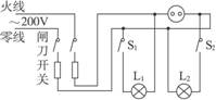 答案:(1)闸刀开关装倒了。照此法安装,当需要更换保险丝,拉闸时,闸刀在重力作用下有可能落下而接通电路,造成触电事故。(2)开关S1接在零线上了。这样,即使断开S1时,灯L1仍与火线相连。(3)插座的两孔都与火线相连。当插座连入用电器时,用电器就与L2串联,使这两个用电器都不能正常工作。
