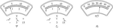8.请读出图6-1-11中各电压表的示数:甲_________,乙_________,丙_________。