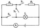24. 如图所示,R1=2Ω,R2=3Ω。当开关S1闭合、S2S3断开时,电流表的示数为0.6A;当开关S1、S2、S3都闭合时,电流表示数为1.5A,且灯泡L正常发光。求: