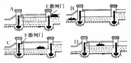 28.图表示船只通过船闸的情况,A、B、C、D不表示时间发生的顺序,而是四幅图的图号,请仔细搜集图中给你的信息,做出以下判断: