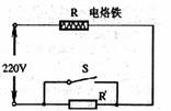 10.右图是一种恒温式电烙铁的电路图,在不用电烙铁焊按时,断开开关S,使它处于保温状态;需要焊接时,闭合开关S就能很快达到焊接温度.若电烙铁的规格是“220V 40W”,且R′=R.则保温时电路消耗的总功率为 ( )