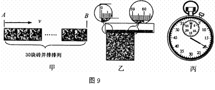 (2)小明用停表测量自己从长廊的A端走到B端所用的时间,停表的读数如图9丙所示,他所用的时间是 s.