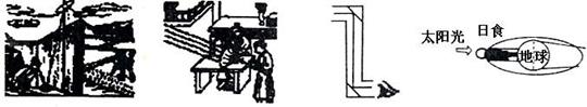 A.古代潜望术 B.冰透镜向日取火 C.潜望镜 D.日食的成因