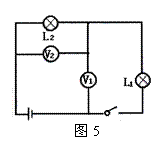 4.如图5所示,电源的电压不变,闭合开关S后,灯泡L1、L2都
