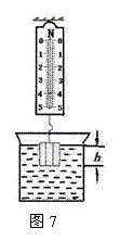 10.如图7所示,将一挂在弹簧测力计下的圆柱体金属块缓慢浸入水中