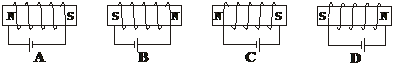 在下列图2-1所示的四个图中,正确地表示出通电螺线管极性关系的是: