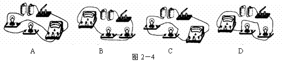 6.图2-4所示的电路中,有可能损坏电流表的是:
