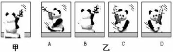 10.如图2-5甲所示,一只大熊猫正抱着一根竹子在镜前欣赏自己的像。此时,它从镜中看到的自身像应该是图7-5乙中的哪一个: