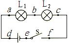 如图所示的电路,闭合开关S后,两灯都不亮。用电压表检测得到的结果是:Uab=Ubc=Ude=Uef=0,若故障只有一处,则可能的原因是( )