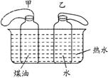 的水和煤油,在瓶口扎上气球,将它们一同浸入热水中,如图所示。