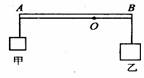 19、如图所示,AB是一个质量不计的杠杆,支点为O,杠杆A、B两端分别挂有甲、乙两个物体,杠杆平衡。已知甲物体的质量为1.5kg,乙物体的质量为4.5kg,AB长2m,则支点O应距A点 米。