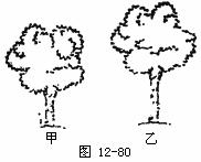 18.物理学中常把实际的研究对象看成物理模型,如图12-80所示的甲、乙两棵树,它们的树冠及根系的深浅及发达程度基本相同.当我们研究哪棵树容易被大风吹倒时,可以把树看成是一个________模型,因此可以判断出________树容易被风吹倒.
