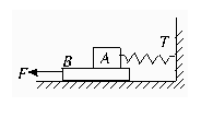 用如图所示的方法可以测定木块A与长木板B之间的滑动摩擦力的大小。把一个木块A放在长木板B上,长木板B放在水平地面上,在恒力F作用下,长木板B以速度v匀速运动,水平弹簧秤的示数为T.下列说法正确的是(