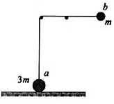 如图所示.一根不可伸长的轻绳两端各系一个小球a和b,跨在两根固定在同一高度的光滑水平细杆上,质量为3m的a球置于地面上,质量为m的b球从水平位置静止释放.当b球摆过的角度为