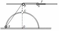 19.如图所示,在距水平地面高为0.4m处,水平固定一根长直光滑杆,在杆上P点固定一定滑轮,滑轮可绕水平轴无摩擦转动,在P点的右边,杆上套有一质量m=2kg小球A。半径R=0.3m的光滑半圆形细轨道,竖直地固定在地面上,其圆心O在P点的正下方,在轨道上套有一质量也为m=2kg的小球B。用一条不可伸长的柔软细绳,通过定滑轮将两小球连接起来。杆和半圆形轨道在同一竖直面内,两小球均可看作质点,且不计滑轮大小的影响,g取10m/s2。现给小球A一个水平向右的恒力F=55N。求: