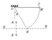 如图所示,处于同一条竖直线上的两个点电荷A、B带等量同种电荷,电荷量为Q;G、H 是它们连线的垂直平分线。另有一个带电小球C,质量为m、电荷量为+q(可视为点电荷),被长为l的绝缘轻细线悬挂于O点,现在把小球C拉起到M点,使细线水平且与A、B处于同一竖直面内,由静止开始释放,小球C向下运动到GH线上的N点时刚好速度为零,此时细线与竖直方向上的夹角θ=30º。试求: