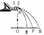 (2)(10分)某同学用如图所示装置通过半径相同的1、2两球的碰撞来验证动量守恒定律.实验时,步骤一:使1球从斜槽上某一固定位置由静止开始滚下,落到位于水平地面的记录纸上,留下痕迹.步骤二:把2球放在水平槽上靠近槽末端的地方,让1球仍从原来位置由静止开始滚下,和2球碰撞后,1、2球分别在记录纸上留下各自的落点痕迹.如图中O点是水平槽末端R在记录纸上的垂直投影点.2球落点痕迹如图所示。