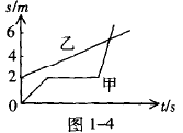 3.如图所示,甲、乙两质点在同一直线上的图,以甲的出发点为原点,以甲出发时刻为计时起点,有下列说法:① 甲开始运动时, 乙在它前面;② 甲、乙是从同地点开始运动的;③ 甲在途中停止运动,最后甲还是追上了乙;④甲追上乙时甲运动时间比乙少。以上说法正确的是( )