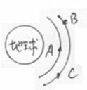 2.三颗人造地球卫星A、B、C绕地球作匀速圆周运动,如图所示,已知MA=MB<MC,则
