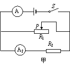 19、在图13(甲)所示的电路中,电源电压保持不变,滑动变阻器R1上标有“40W 2A”字样,电流表A、A2的表盘相同,如图13(乙)所示。闭合电键后,当滑动变阻器的滑片P在中点位置时,电流表A 的示数为0.6安,电流表A2的示数为0.4安。求: