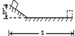 (7分)一个物体从斜面上高h处由静止滑下并紧接着在水平面上滑行一段距离后停止,测量得停止处距开始运动处的水平距离为s(见图),不考虑物体滑至斜面底端的碰撞作用,并认为斜面与水平面对物体的动摩擦因数相同,求摩擦因数μ。