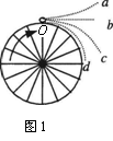 如图1所示,撑开带有水滴的伞,使其绕着伞柄在竖直面内顺时针旋转,伞面上的水滴随伞做曲线运动。若有水滴从伞面边缘最高处O飞出,则水滴飞出伞面后的运动可能是( )