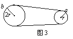 如图3所示为一皮带传动装置,右轮的半径为r,a是它边缘上的一点;左轮的半径为2r,b是左轮边缘上的一点。若在传动过程中,两轮均匀速率转动,且皮带不打滑。则关于a、b两点的线速度v的大小,下列关系中正确的是 ( )