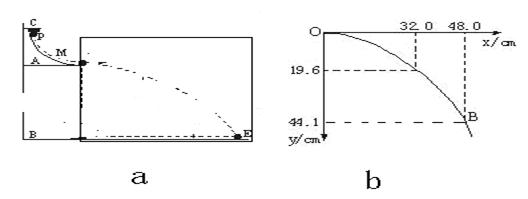 11. 如图(a) 是“研究平抛运动”的实验装置图,(b)是实验后在白纸上作的图. (1)固定斜槽轨道时应注意使_______________________________. (2)实验过程中需经过多次释放小球才能描绘出小球平抛运动的轨迹,实验中每次释放小球时应______________________________________. (3)计算小球平抛初速度的公式为Vo=______________(用X、Y、g等表示),根据图(b)给出的数据,可计算出Vo=______________m/s.(取g=9.8m/s2)