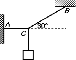 (12分)如图,在细绳C点系一重物G,细线两端A、B分别固定在墙上,使得AC保持水平,BC与水平方向成30°角,已知细绳最多只能承受200N的拉力,那么在C点悬挂物的重力最多为多少?