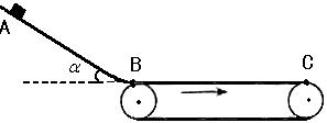 19、(14分)如图所示,一物体从高为h=1.2m,倾角为a=370斜坡上的A点由静止开始下滑,经过B点后进入水平向右运动的传送带上(设经过B点前后速度大小不变),斜坡和传送带的动摩擦因数均为m=0.25,传送带长为10m,传送带匀速运动的速度为v=2m/s(g取10m/s2,cos370=0.8,sin370=0.6),求: