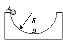 如图所示,固定的半圆形槽内壁内径为R,质量为m的小球(可看作质点)从内边缘A处静止释放。小球从A处滑到底部最低点B的过程中,克服摩擦阻力所做的功为mgR/2 ,求小球滑到底部最低点B时速度的大小及此时小球对内壁的压力大小。