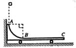 14(18分).如图所示,水平光滑地面上停放着一辆小车,左侧靠在竖直墙壁上,小车的四分之一圆弧轨道AB是光滑的,在最低点B与水平轨道BC相切,BC的长度是圆弧半径的10倍,整个轨道处于同一竖直平面内。可视为质点的物块从A点正上方某处无初速下落,恰好落入小车圆弧轨道滑动,然后沿水平轨道滑行至轨道末端C处恰好没有滑出。已知物块开始下落的位置距水平轨道BC的竖直高度是圆弧半径的4倍,,小车的质量是物块的3倍,不考虑空气阻力和物块落入圆弧轨道时的能量损失。求: