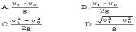 12.一物体从某高度以初速度v0水平抛出,落地时速度大小为vt,则它运动时间为 [ ]
