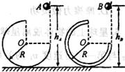 圆弧轨道竖直固定在水平地面上,半径R相同,A轨道由光滑金属凹槽制成,B轨道由光滑金属圆管制成。在两轨道右侧的正上方分别将金属小球A和B由静止释放,小球距离地面的高度分别为