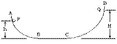 17.(10分)滑板运动是一项惊险刺激的运动,深受青少年的喜爱。如图4是滑板运动的轨道,AB和CD是两段光滑圆弧形轨道,BC是一段长7m的水平轨道。一运动员从AB轨道上的P点以6m/s的速度下滑,经BC轨道后冲上CD轨道,到Q点时速度减为零。已知运动员的质量50kg,h=1.4m,H=1.8m。(g=10m/s2)