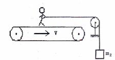 12.测定运动员体能的一种装置如图所示,运动员质量为m,绳拴在腰间沿水平方向跨过滑轮(不计滑轮质量及摩擦),下悬一质量为m2的重物,人用力蹬传送带而人的重心不动,使传送带以速率v匀速向右运动。下面是人对传送带做功的四种说法,其中正确的是