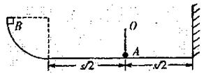 19.(11分)一轻质细绳一端系一质量为m=0.5kg的小球A,另一端挂在光滑水平轴0上,0 到小球的距离为L=0.2m,小球和水平面接触但无相互作用,在球的两侧等距离处分别固定一个光滑的大圆弧面和一个挡板如图所示水平距离s为2m,动摩擦因数为0.25.现有一小滑块B,质量也为m,从圆弧面上滑下,与小球碰撞时交换速度,与挡板碰撞不损失机械能.若滑块B从圆弧面某一高度h处滑下与小球第一次碰撞后,使小球恰好在竖直平面内做圆周运动,(不计空气阻力,并将滑块和小球都视为质点.g取10m/s。)