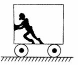 如图1所示,在匀加速向左运动的车厢内,一个人用力向前推车厢,若人与车始终保持相对静止,则以下结论中哪个是正确的( )