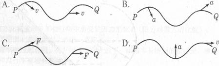 2.质点在一平面内沿曲线由P运动到Q。如果用v,、a、F分别表示质点运动过程中的速度、加速度和受到的合外力,则下列各图中正确的是