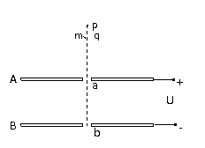 如图所示,中央有正对小孔的水平放置的平行板电容器与电源连接,电源电压为U。将一带电小球从两小孔的正上方P点处由静止释放,小球恰好能够达到B板的小孔b点处,然后又按原路返回。那么,为了使小球能从B板的小孔b处出射,下列可行的办法是
