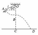 如图所示,让摆球从图中的A位置由静止开始下摆,正好摆到最低点B位置时线被拉断.设摆线长l=1.6 m,悬点到地面的竖直高度为H=6.6