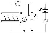 (2)图7所示是测定光电效应产生的光电子荷质比的实验原理简图:两块平行板相距为d,放在真空容器中,其中N金属板受光线照射时发射出沿不同方向运动的光电子,形成电流,从而引起电流表指针偏转.若调节R,逐渐增大极板间电压,可以发现电流逐渐减小,当电压表示数为U时,电流恰好为零;切断开关,在MN间加上垂直于纸面的匀强磁场,逐渐增大磁感强度,也能使电流为零.当磁感强度为B时,电流恰为零.由此可得光子的荷质比